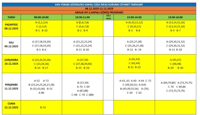 Aralık Ayı Kapalı Görüş Programı ı 2