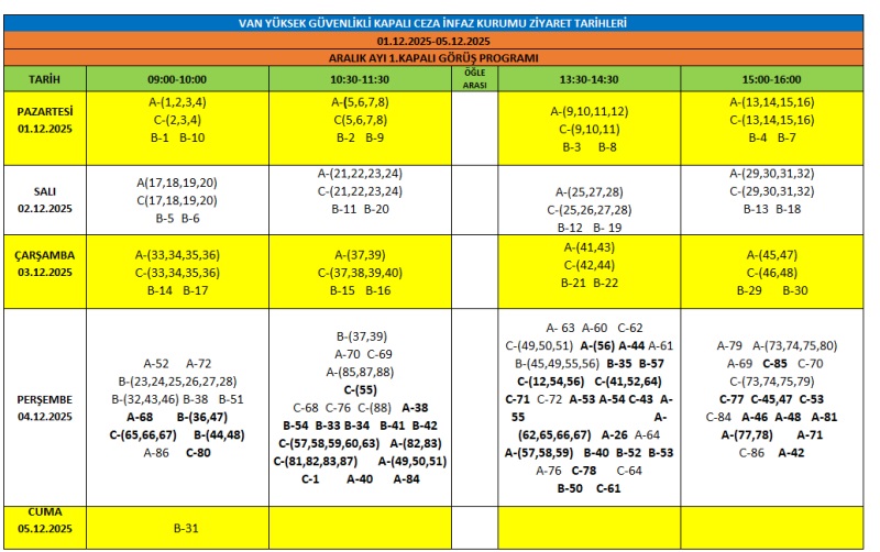 BELİRTİLEN ZİYARET SAATLERİ DIŞINDA ZİYARETÇİ ALINMAYACAKTIR.