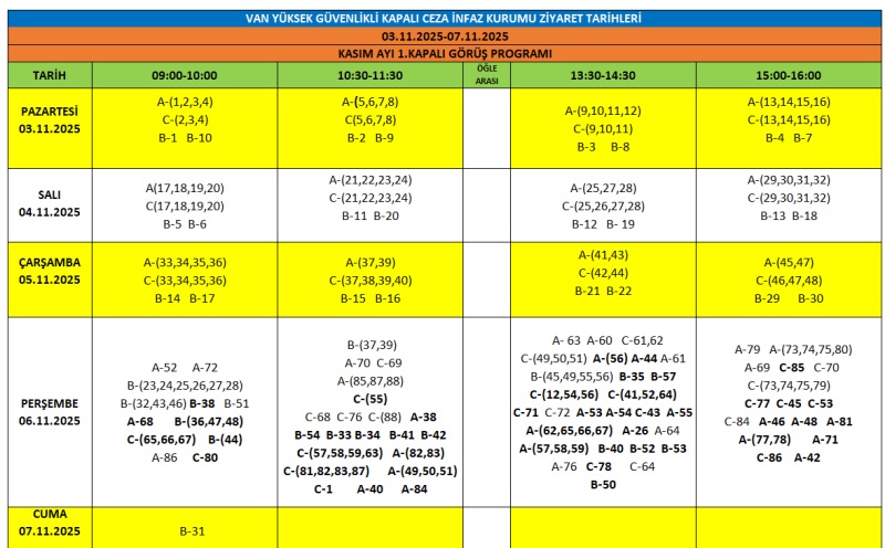 BELİRTİLEN ZİYARET SAATLERİ DIŞINDA ZİYARETÇİ ALINMAYACAKTIR.