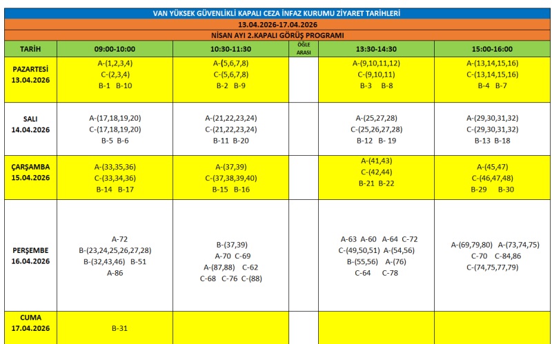 Nisan Ayı Kapalı Görüş Programı 2